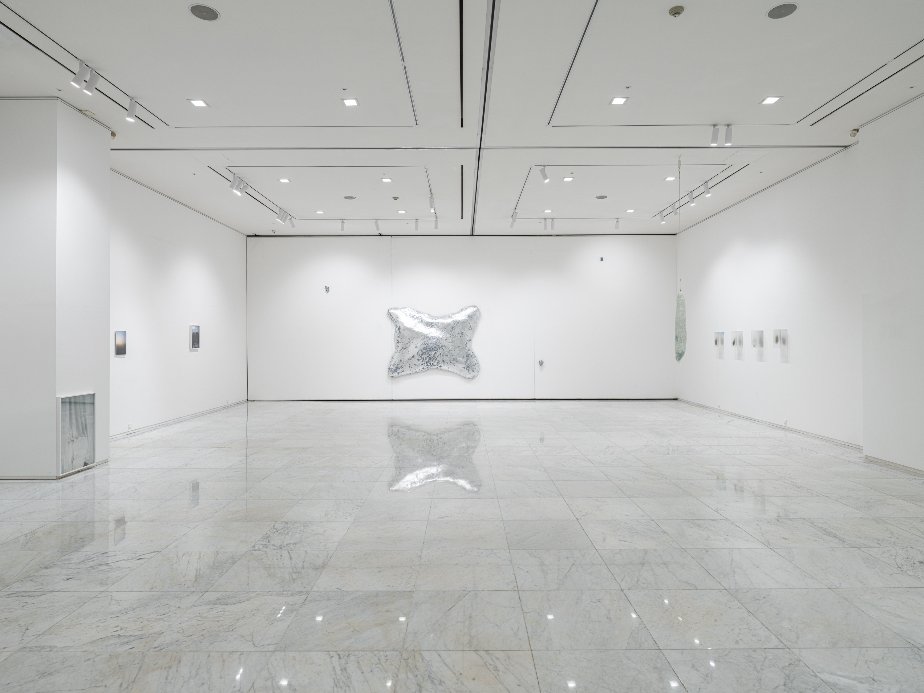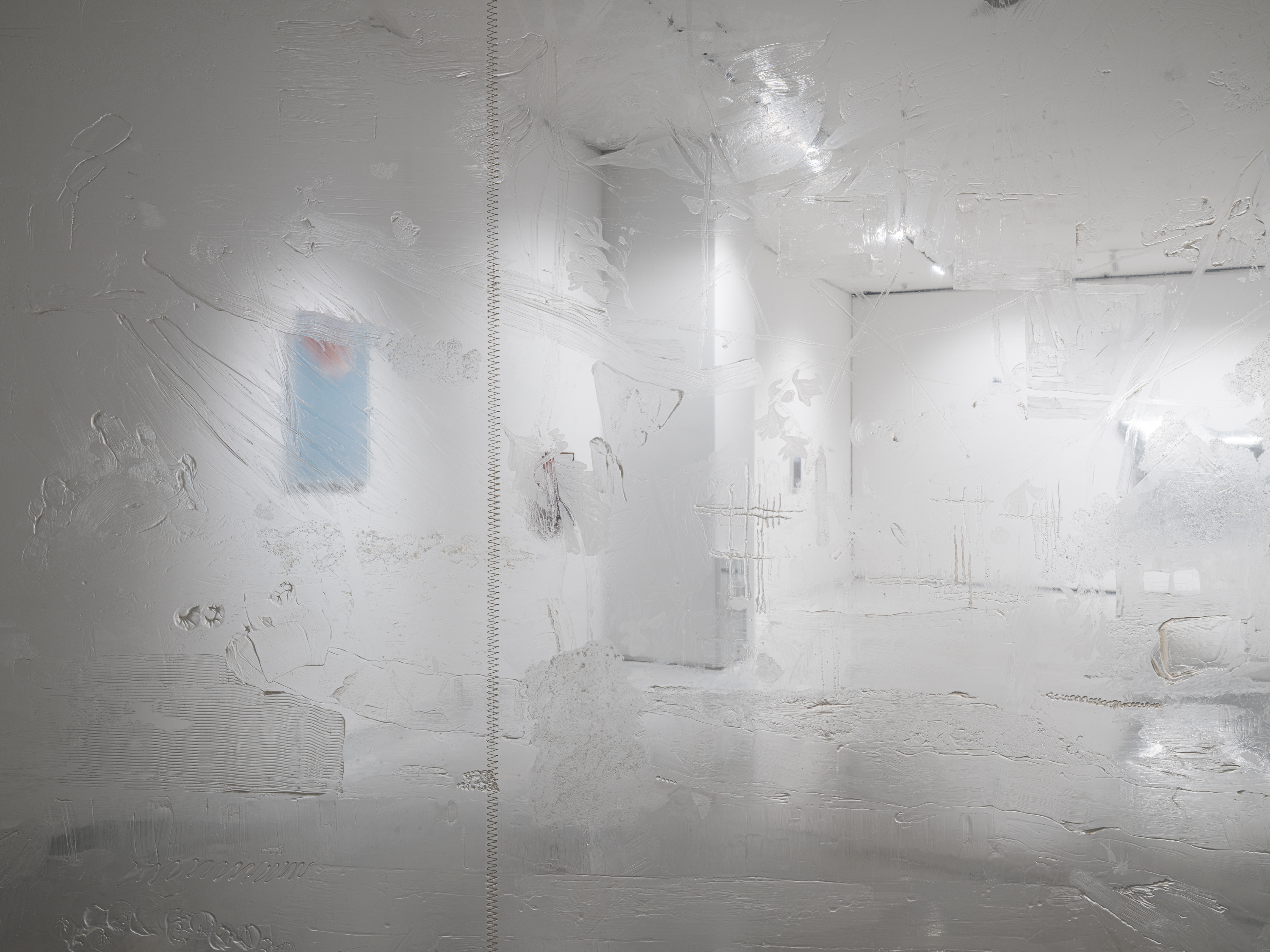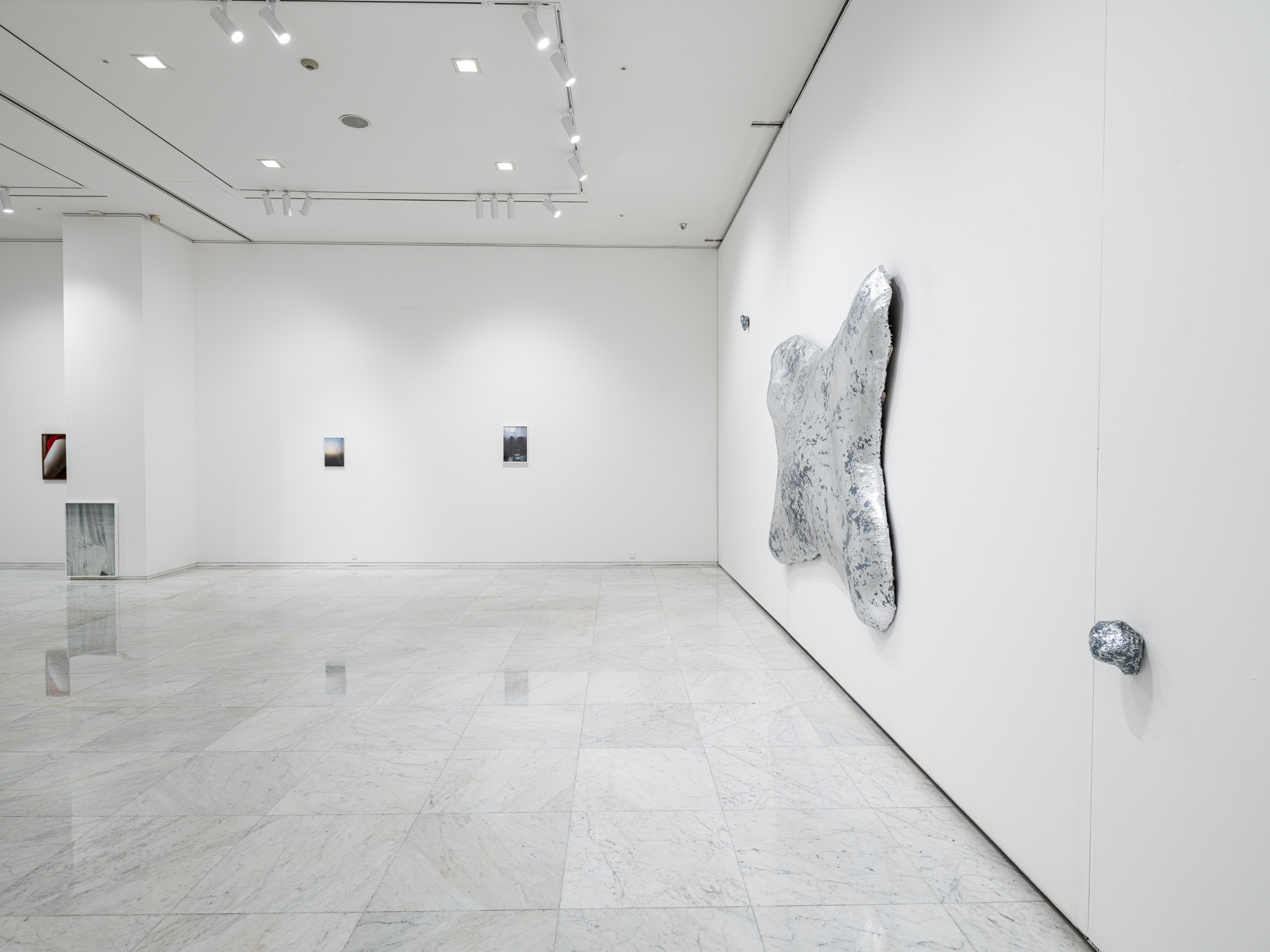 derived from it.In the exhibition space, fragments of images float like buoys. As the viewers pass between these buoys, they embody a sense of having lost their way. Opposite the abstract strokes, akin to those found in typography, a semi- transparent screen crosses the space. Through it, photographs capturing a reality and illusion somewhere beyond appear faintly, like through fog. Meanwhile, objects resembling bodies, casually hung on walls and ceilings, evoke memories of those who have departed, or traces of their presence, creating a sense of strangeness and pathos. The objects here are no different from the indented traces left in places where something once existed. Following the traces of these marks, one encounters an unknown door leading to the other. Opening the door to uncertainty and mystery is not an easy task. Yet, we embark on adventures only after losing our way, and in that moment, the scope of life becomes infinite. The exhibition leaves behind an eternal scar created from longing and suggests to the viewer that they willingly step into the world of the other by following these scars.